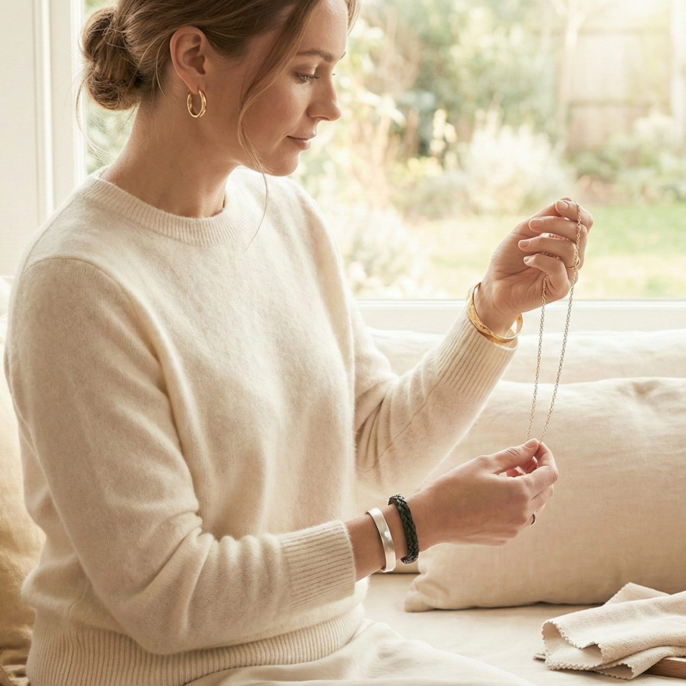 The organic texture of this bangle makes it incredibly versatile. For a "classy" and curated look, stack it with our Aura Gold Hoops or layer it alongside the Silk Chain Necklace. It adds a touch of artisanal warmth to a structured blazer or a relaxed silk blouse.